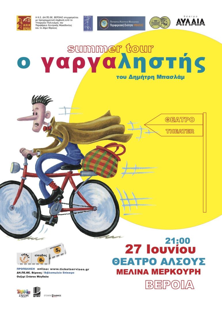 Το ΔΗΠΕΘΕ Βέροιας σε συμπαραγωγή με το Θέατρο ΑΥΛΑΙΑ παρουσιάζουν το εξαιρετικό μουσικό παραμύθι του Δημήτρη Μπασλάμ σε καλοκαιρινή περιοδεία. Ο γαργαληστής με την κόκκινη καρό του τσάντα, ταξιδεύει με νέα πλοκή, ενορχήστρωση και ευρηματικούς διαλόγους, οι οποίοι με δεξιότητα και χιούμορ πλέκουν το νήμα της ιστορίας.