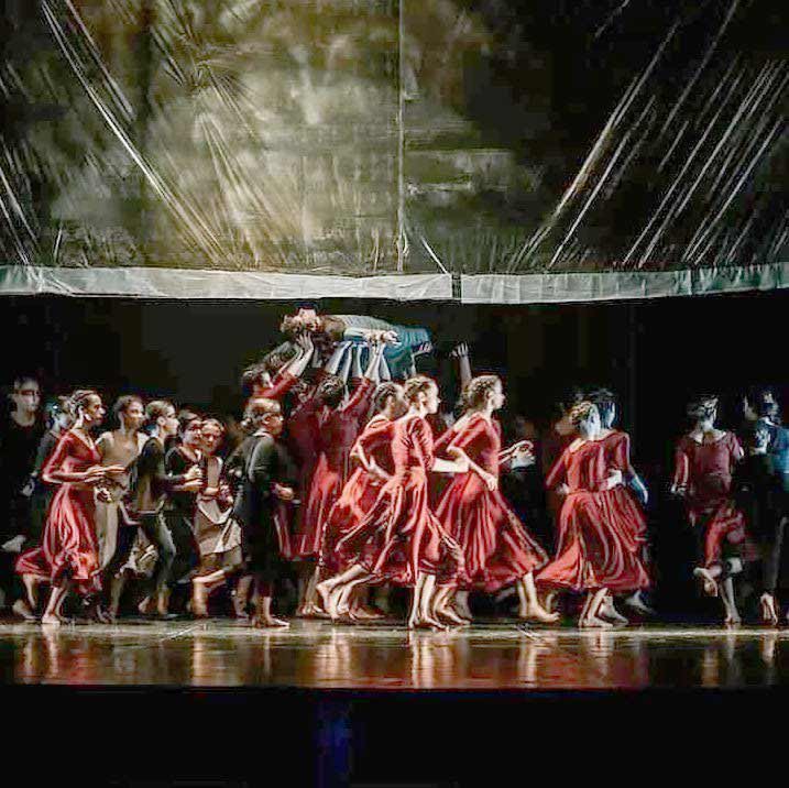 To μυθιστόρημα του Robert Fischer O Iππότης με τη Σκουριασμένη Πανοπλία επέλεξε να παρουσιάσει η Σοφία Αντωνιάδου με τους χορευτές της και την καλλιτεχνική της ομάδα. Γραμμένο σαν ένα μεσαιωνικό παραμύθι το έργο του Fischer αποτελεί ένα ταξίδι στις περιπέτειες του «Εγώ». Φόβοι, αγωνίες και μοναξιά λειτούργησαν ως ο πρωταρχικός δραματουργικός πυρήνας πάνω στον οποίο το σύνολο της καλλιτεχνικής ομάδας μετέγραψε το λογοτεχνικό κείμενο σε κίνηση και χορό. Πολύ φρέσκια η χορογραφική ματιά της Αναστασίας Δίγκα και της Μάτας Αφεντούλη κατάφερε να παντρέψει πολλές τεχνικές του σύγχρονου χορού σε ένα άρτιο χορογραφικό σύνολο. Με μεγάλη ικανότητα οι νέες χορογράφοι κατάφεραν να αφηγηθούν τον υπαρξιακό παλμό του έργου άλλοτε με μεγάλα χορογραφικά σύνολα και άλλοτε με soli, dueti και quartetti. Iδιαίτερα εμβληματική και προκλητικά ενδιαφέρουσα η χορογραφία της άριας Ave Maria του Franz Schubert με την τεχνική του contact improvisation θυμίζοντας μεσαιωνικό γλυπτικό σύμπλεγμα σε διαρκή κίνηση. Οι μουσικές επιλογές των χορογράφων ιδιαίτερα απαιτητικές στο σύνολο τους με έργα των Henry Purcell, Franz Schubert, Phillip Glass, Rene Aubrey άλλα και την ηλεκτρονική μουσική του Etienne Jaumet κατάφεραν να δημιουργήσουν μία δομή με παλμό, ρυθμό και ροή. Ο Τάσος Πρωτοψάλτου ένα γνήσιο ταλέντο δημιούργησε ένα υψηλής αισθητικής συναισθηματικά και δραματουργικά φορτισμένο σκηνογραφικό σύμπαν. Ο Τάσος Πρωτοψάλτου με βαθιά γνώση του αντικειμένου του τόσο καλλιτεχνική όσο και ιστορική μας καταθέτει νέες προτάσεις για την τέχνη της σκηνογραφίας. Οι αιθέριες αυλαίες του κατάφεραν να συνδυάσουν σύγχρονα τεχνολογικά υλικά όπως τα κελοφανοειδή ζωγραφισμένα με μεσαιωνικές τεχνικές και υφές με άμεση αναφορά στην εποχή του έργου. Η σκηνογραφία όσο και τα κοστούμια που υπογράφει ο ίδιος είναι σε αέναη κίνηση σε κάθε στιγμή της παράστασης προτείνοντας ταυτόχρονα μία αισθητική αρτιότητα. Σκηνογραφία και ενδυματολογία που πραγματικά χορεύουν! Οι καλλιτεχνικοί φωτισμοί του Αzaad Xαραλάμπους συμβάλλουν στην ατμόσφαιρα του έργου δραματικά πλούσιοι αλλά συνάμα δωρικοί χωρίς χρωματικές φλυαρίες υπογραμμίζουν την υπαρξιακή και άρτια εικαστική διάσταση της παράστασης. Άρτια εκπαιδευμένοι οι πολύ νέοι χορευτές της ομάδας υπηρετούν πλήρως το σύνολο της παράστασης και ερμηνεύουν με αξιοζήλευτη σκηνική παρουσία όχι μόνο τη χορογραφία και τη μουσική αλλά και τη σκηνογραφία και ενδυματολογία. Πολύ σημαντική η πρωτοβουλία της Σοφίας Αντωνιάδου που είχε την καλλιτεχνική διεύθυνση της παραγωγής να εμπιστευθεί αυτούς τους νέους και τόσο ταλαντούχους δημιουργούς οι οποίοι με τη σειρά τους δημιούργησαν ένα μοναδικό έργο τέχνης επί σκηνής.