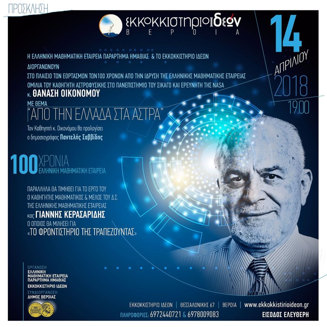 Ο Καθηγητής Αστροφυσικής και ερευνητής της ΝΑSΑ Θανάσης Οικονόμου στο ΕΚΚΟΚΚΙΣΤΗΡΙΟ ΙΔΕΩΝ της Βέροιας