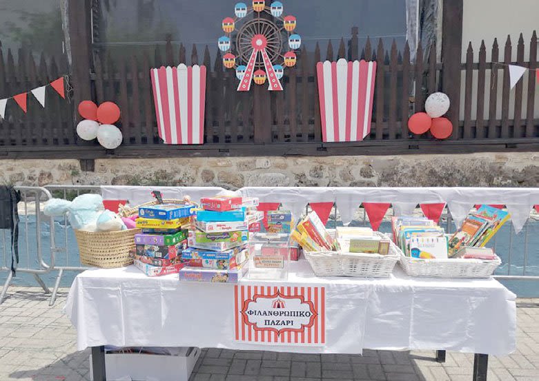 Στο πλαίσιο αυτής της πετυχημένης γιορτής για τη λήξη του σχολικού έτους, στήθηκε ένα μικρό παζάρι με βιβλία και παιχνίδια σε πολύ οικονομικές τιμές , τα έσοδα του οποίου δόθηκαν στον κουμπαρά του Ομίλου Προστασίας Παιδιού Βέροιας.