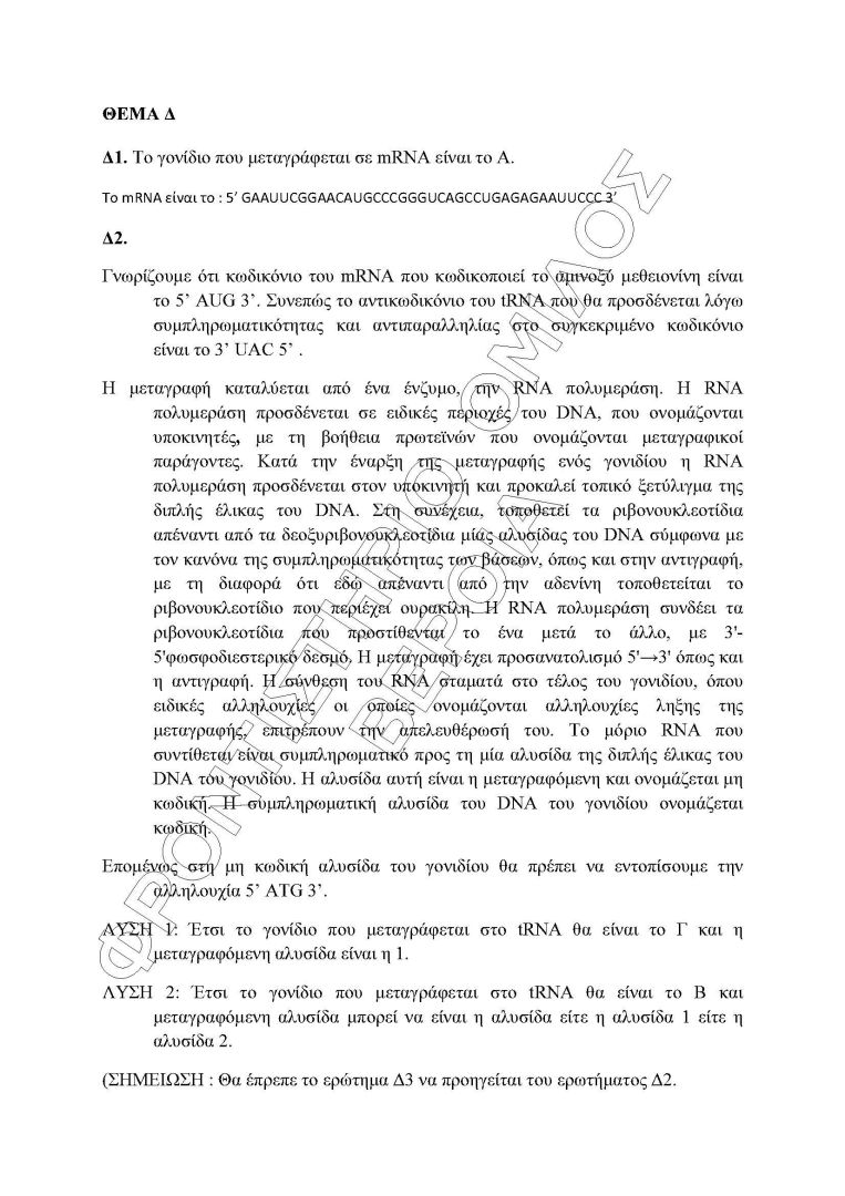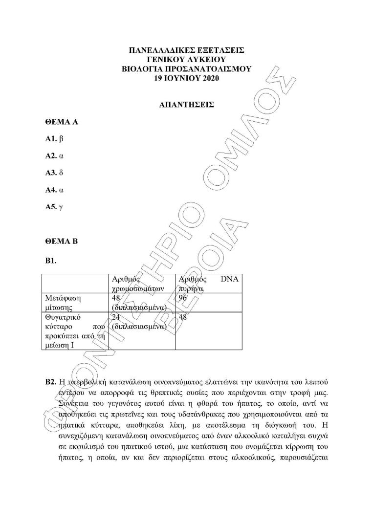 Οι απαντήσεις στη ΒΙΟΛΟΓΙΑ