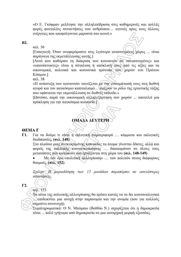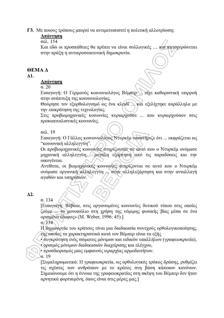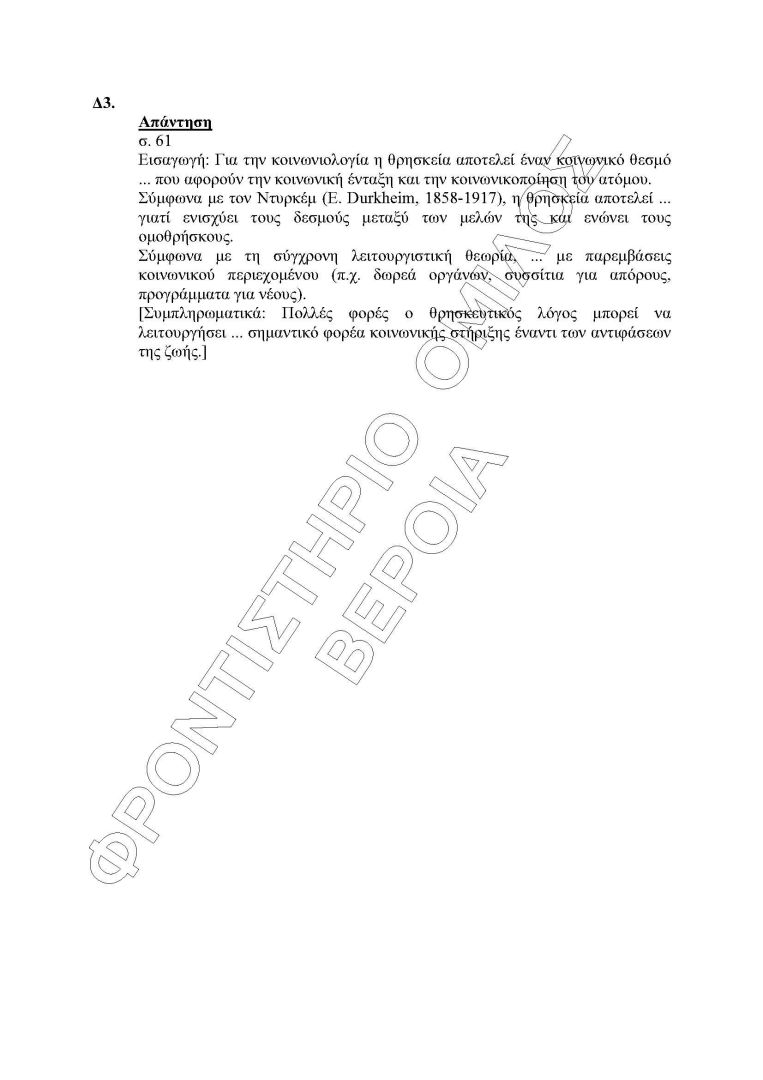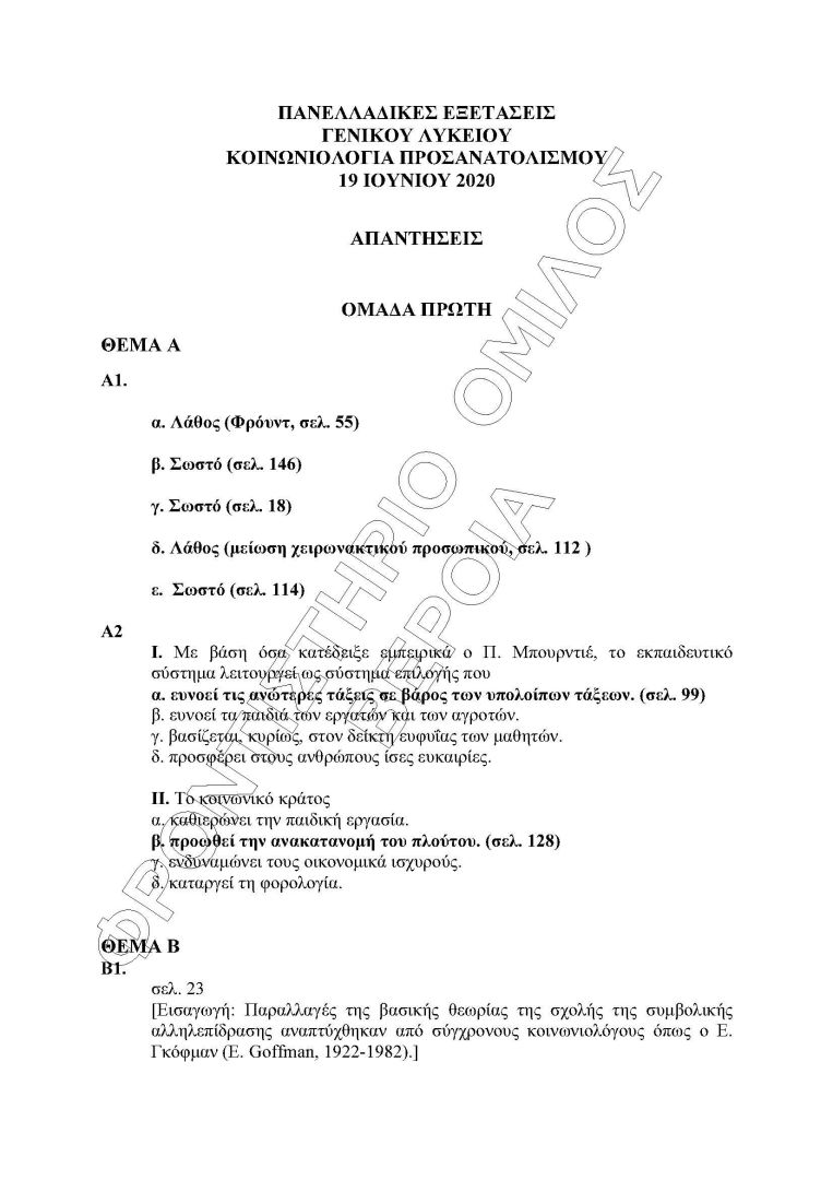 Οι απαντήσεις στη Κοινονιολογία