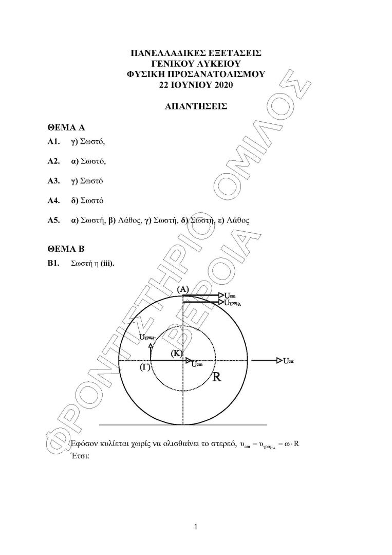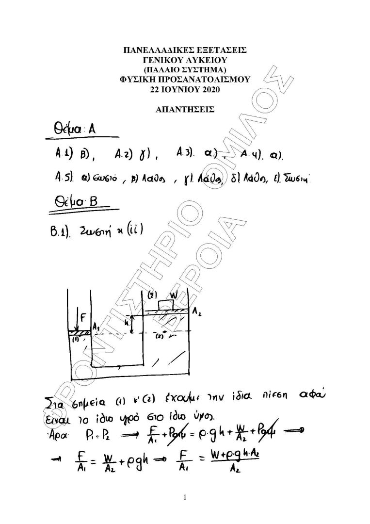 Οι απαντήσεις στη ΦΥΣΙΚΗ (ΠΑΛΙΟ ΣΥΣΤΗΜΑ)