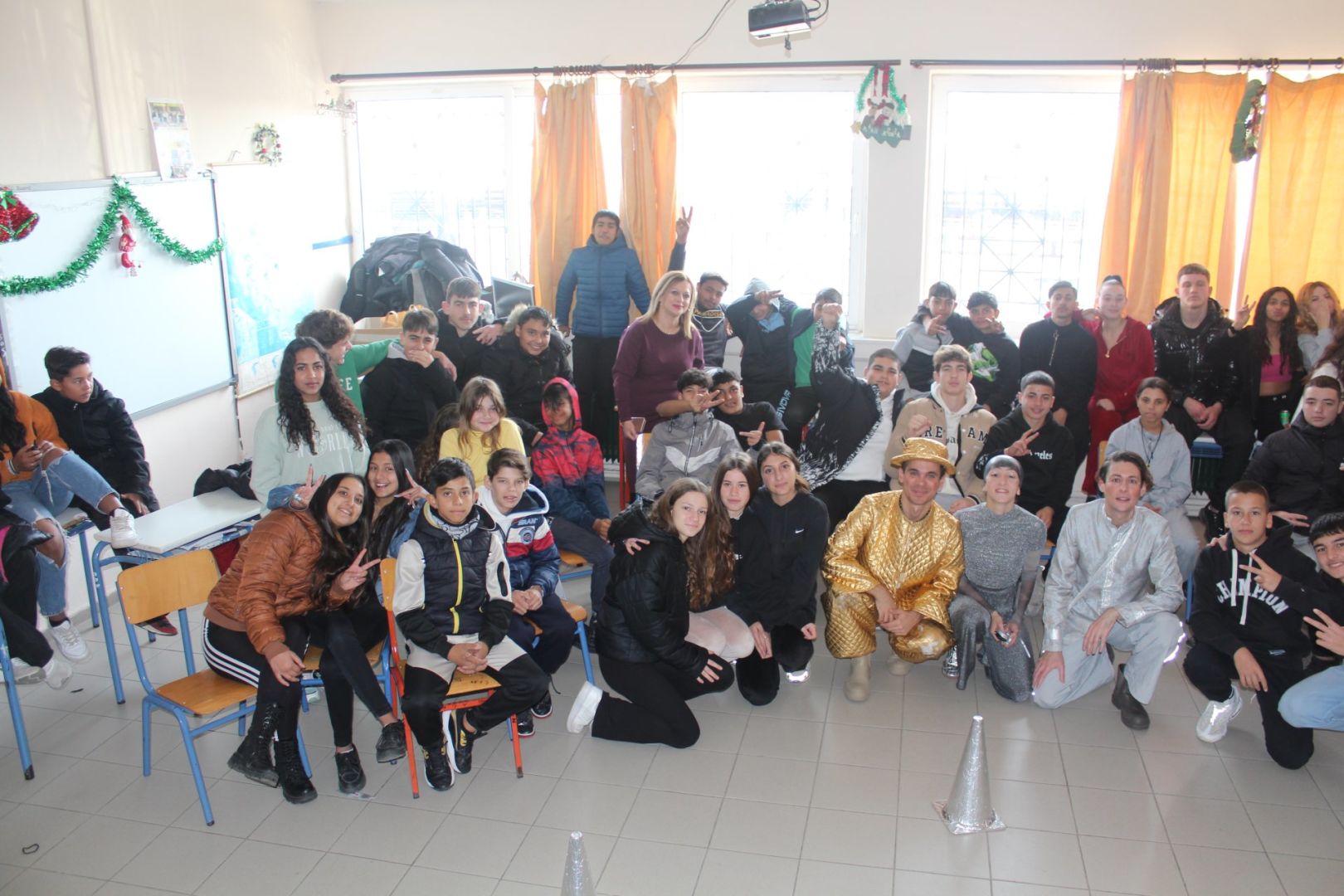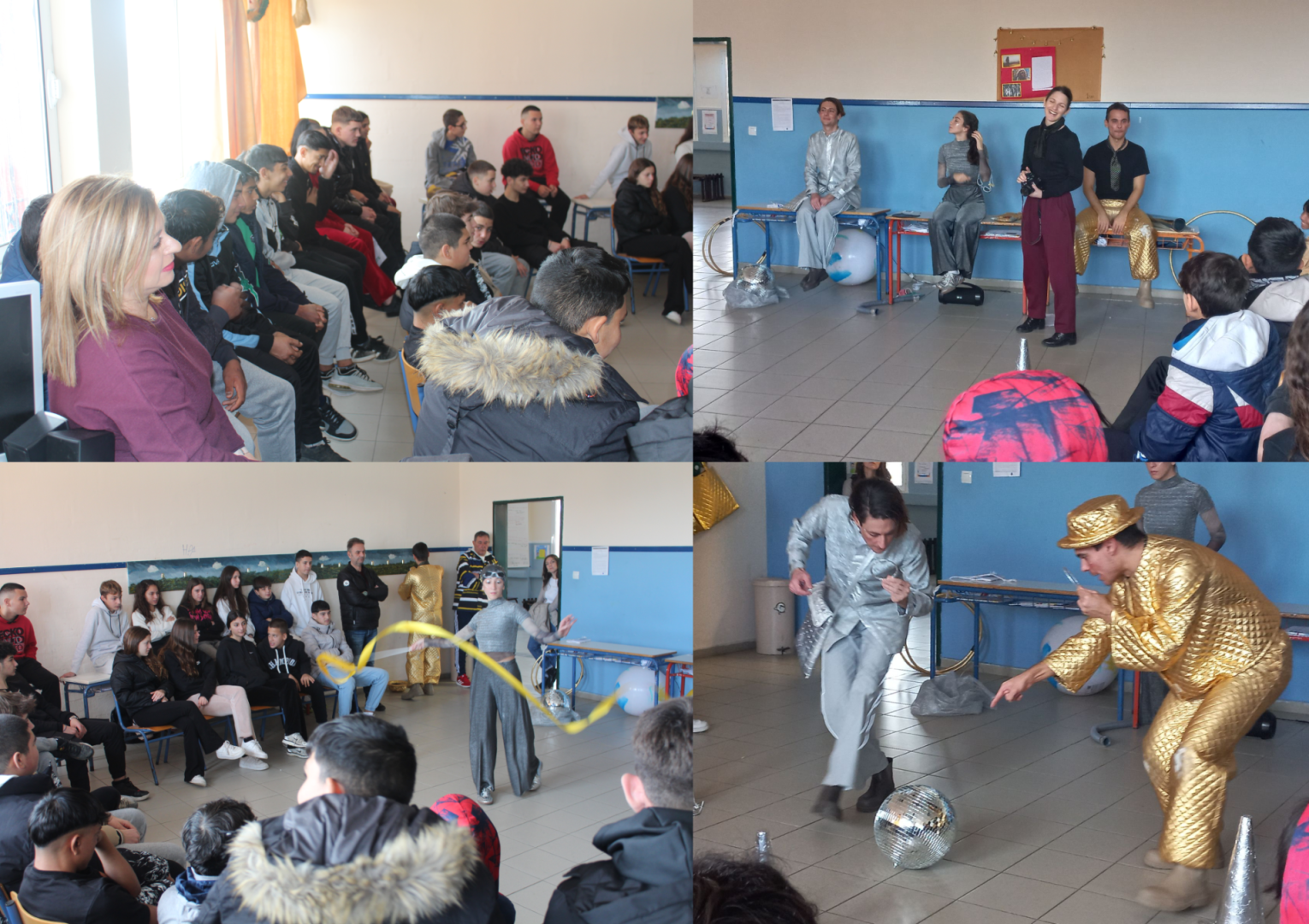 στην πρόσκληση της διευθύντριας του σχολείου, Ιντζεβίδου Κυριακής παρουσίασε στην σχολική αίθουσα την παράσταση της Παιδικής του Σκηνής, «ο ΜικροΜέγας» ένα πρωτότυπο