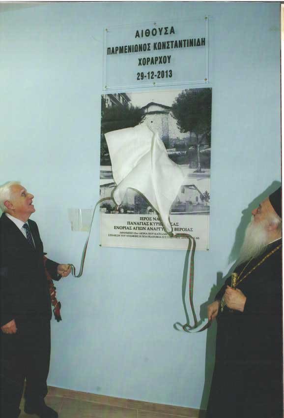 Φωτο 2 Αποκαλυπτήρια πλάκας κατά την ονοματοδοσία αίθουσας τελετών Αγίων Αναργύρων σε Αιθουσα Χοράρχη Παρμενίωνα Κωνσταντινίδη