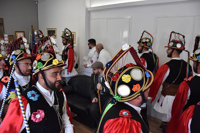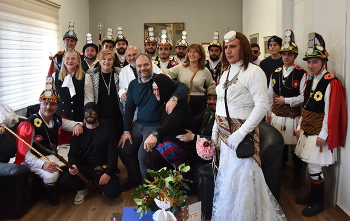 Δημαρχείο, με την αναβίωση του εθιμικού δρώμενου των «Μωμόγερων» που πραγματοποίησε η Εύξεινος Λέσχη Ποντίων Νάουσας, παρουσία του
