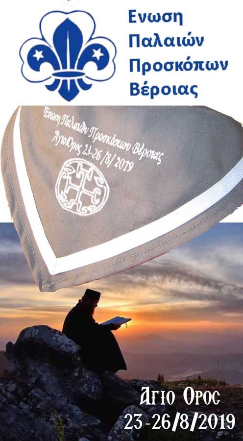 Η Ένωση Παλαιών Προσκόπων της Βέροιας (ΕΠΠΒ), με 15 καλά προετοιμασμένα φιλακόλουθα στελέχη της, σχεδίασαν και πραγματοποίησαν στις 23-26 Αυγούστου τετραήμερο οδοιπορικό στην χερσόνησο του Αγίου Όρους, επισκεπτόμενοι 6 κυρίαρχες μονές, δύο σκήτες, την πρωτεύουσα Καρυές και τα πέριξ κελιά τους, ιχνηλατώντας και καταγράφοντας την αγιορείτικη παράδοση, τέχνη, μοναστική προσήλωση αλλά και γευσιγνωσία. Η παρουσία τους συνέπεσε με την αγιορείτικη περίοδο της προ του δεκαπενταύγουστου, μεγάλης νηστείας.