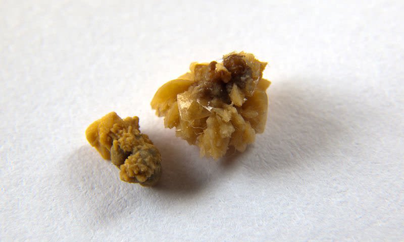 ασβέστιο και το ουρικό οξύ, με αποτέλεσμα να σχηματίζονται μικροί κρύσταλλοι.