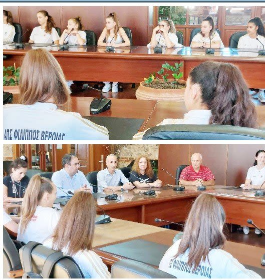 Τις πρωταθλήτριες του Τμήματος Αισθητικής Ομαδικής Γυμναστικής του Α.Π.Σ. «Φίλιππος Βέροιας» που κατέκτησαν τη 2η, 3η και 5η θέση στο Βαλκανικό πρωτάθλημα στο Μπουργκάς της Βουλγαρίας, υποδέχθηκε ο Δήμαρχος Βέροιας, Κωνσταντίνος Βοργιαζίδης.