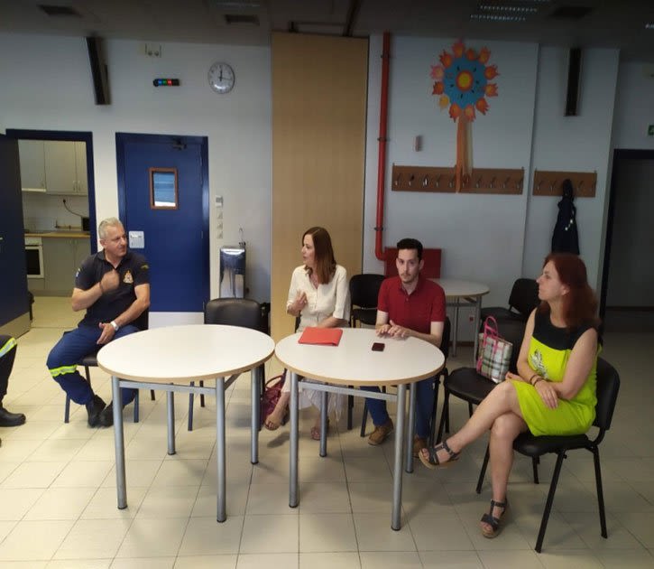 Οι υποψήφιοι βουλευτές Ημαθίας του Σύριζα-Προοδευτική Συμμαχία, Εύη Παπαγιαννούλη και Στέργιος Καλπάκης στην Πυροσβεστική Υπηρεσία Βέροιας