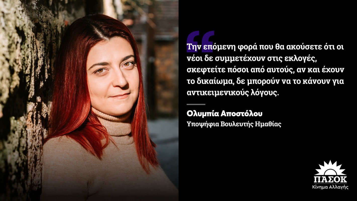 Την επόμενη φορά που θα ακούσετε ότι οι νέοι δε συμμετέχουν στις εκλογές, σκεφτείτε πόσοι από αυτούς, αν και έχουν το δικαίωμα, δε μπορούν να το κάνουν για αντικειμενικούς λόγους. Το πολιτικό σύστημα θα ασχοληθεί σοβαρά με τα προβλήματα των νέων, μόνο όταν γίνει μαζική η παρουσία τους στην κάλπη. Όσο κλισέ και αν ακούγεται, η ψήφος είναι δύναμη. Μια δύναμη όμως που αποκτάς όταν έχεις όχι μόνο το δικαίωμα της ψήφου, αλλά και την ευκαιρία να το εξασκήσεις.