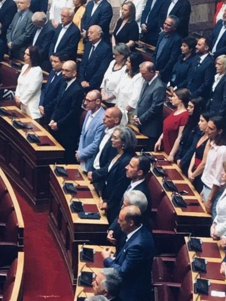 Λίγο μετά τις 11 ξεκίνησε η τελετή ορκωμοσίας της νέας βουλής, με την είσοδο στο χώρο της ολομέλειας του Αρχιεπισκόπου Ιερώνυμου.