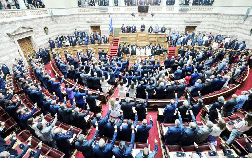 Και μετά τον καθιερωμένο αγιασμό, με πολυπληθή παρουσία του Κλήρου και τη χοροστασία του Αρχιεπίσκοπου Ιερώνυμου, ακολούθησε ο θρησκευτικός όρκος τον οποίο επέλεξαν σχεδόν όλοι οι βουλευτές της ΝΔ, του ΚΙΝΑΛ και της Ελληνικής Λύσης, ο όρκος στο Κοράνι για τους τρεις μουσουλμάνους βουλευτές και ο πολιτικός όρκος για τους βουλευτές του ΣΥΡΙΖΑ, του ΚΚΕ και του ΜέΡΑ25 με λίγες εξαιρέσεις..
