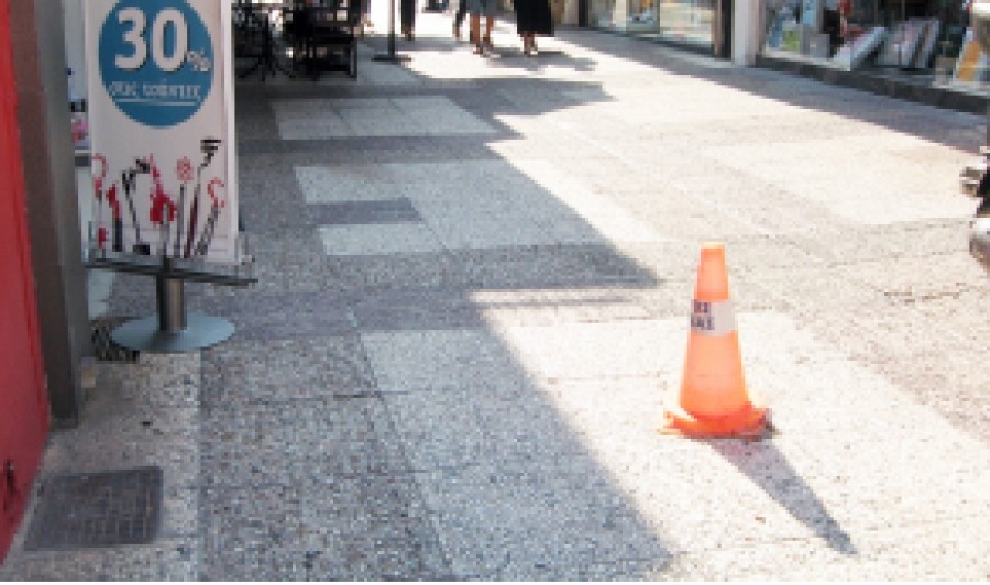 Αυτός ο κώνος βρίσκεται εδώ και αρκετές ημέρες πάνω στο πλακάκι, στην οδό Αριστοτέλους (προς Κεντρικής) στη Βέροια, μπροστά στον Γαϊτανίδη. Αρκετές φορές ενόχλησαν το Δήμο οι καταστηματάρχες, για να διορθωθεί η ζημιά στο πλακίδιο το οποίο προφανώς έσπασε, ενώ πριν την τοποθέτηση του κώνου, σημειώθηκαν και μικροατυχήματα σε πεζούς που περνούσαν από εκεί.