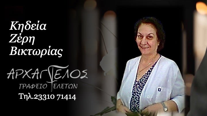 Έφυγε από τη ζωή και κηδεύεται την Πέμπτη 25 Σεπτεμβρίου 2025 στις 10.30 π.μ. από τον Ιερό Ναό Αγίου Αθανασίου (Κοιμητήρια) Βέροιας η Βικτωρία Ζέρη