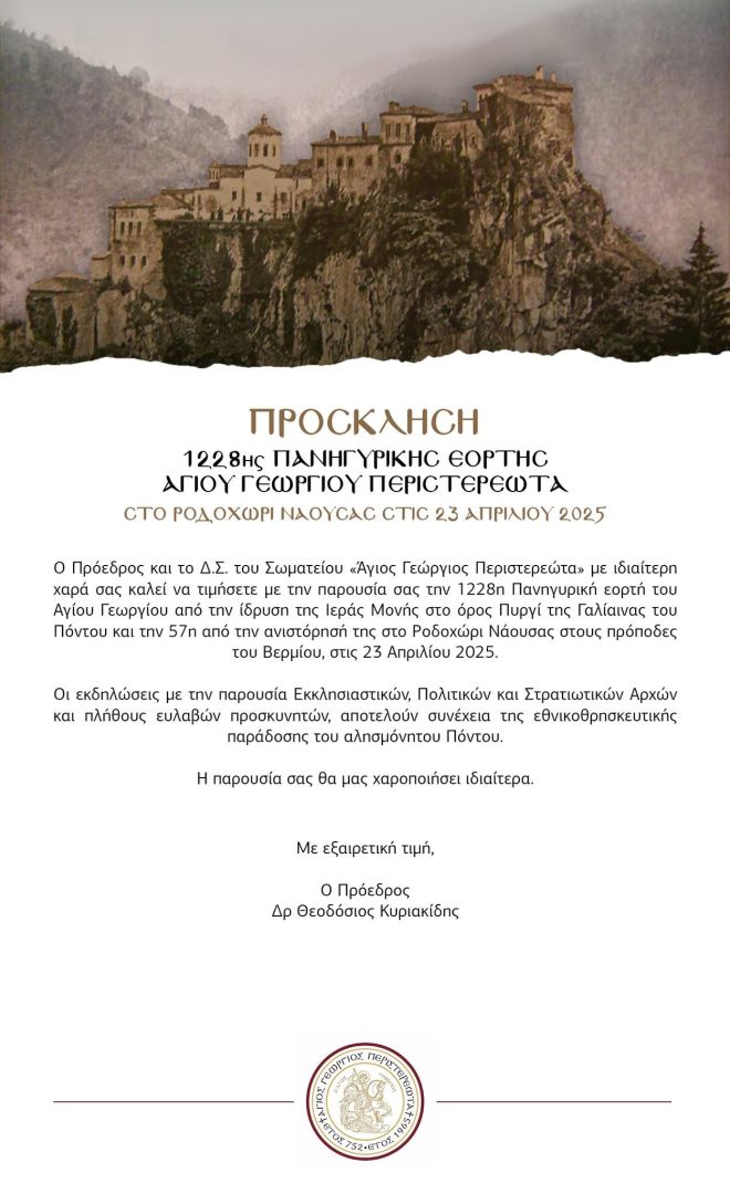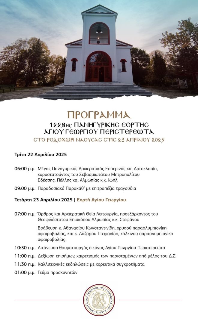 Πανηγυρικός εορτασμός Αγίου Γεωργίου Περιστερεώτα