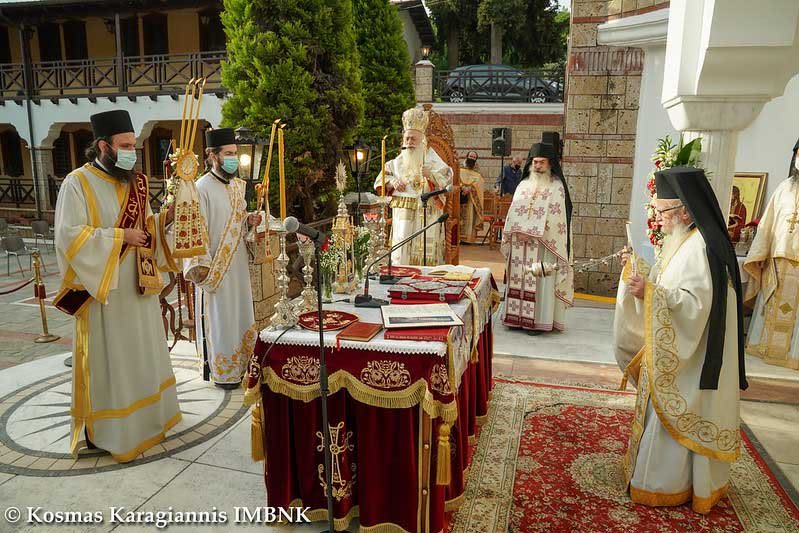 Φέτος, λόγω των περιοριστικών μέτρων οι Ιερές Πανηγυρικές Ακολουθίες τελέστηκαν στον αύλειο χώρο της Ιεράς Μονής έμπροσθεν του θαυματουργού Αγιάσματος.