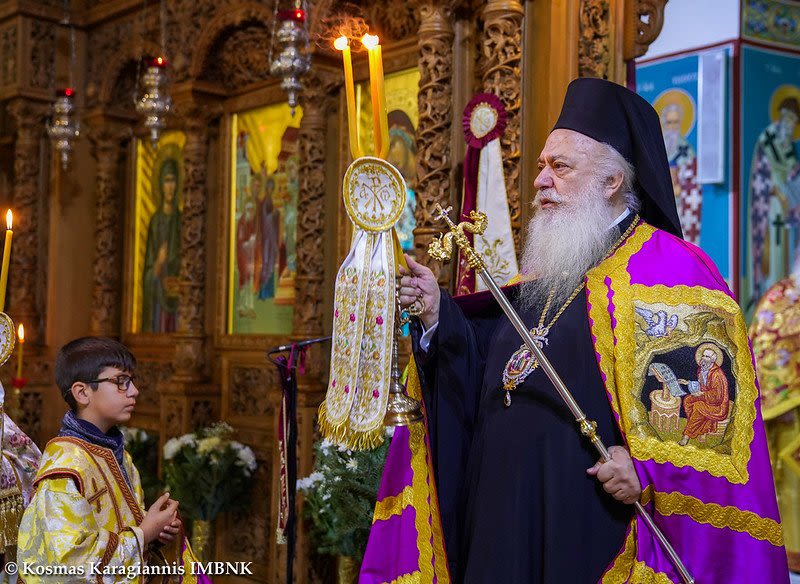 Στον Πανηγυρικό Εσπερινό χοροστάτησε ο Σεβασμιώτατος Μητροπολίτης Σμύρνης κ. Βαρθολομαίος, ενώ έλαβε μέρος και κήρυξε το θείο λόγο ο Ποιμενάρχης μας Σεβασμιώτατος Μητροπολίτης Βεροίας, Ναούσης και Καμπανίας κ. Παντελεήμων.