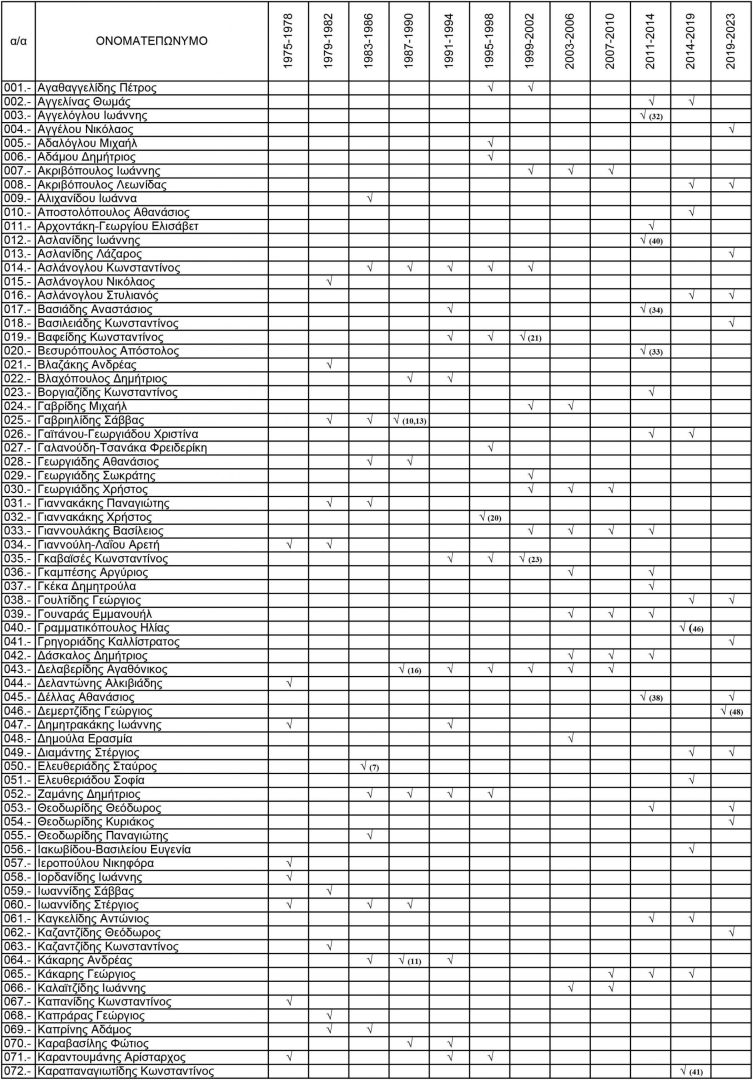 (3)-(4): στην θέση του παραιτηθέντος Ν. Κοτρίδη (1981) ανέλαβε ο Ν. Καρυπίδης.