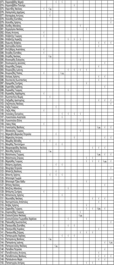 (47)-(48): στην θέση του παραιτηθέντος Ι. Παπαγιάννη (πριν από την ορκωμοσία) ανέλαβε ο Γ. Δεμερτζίδης.