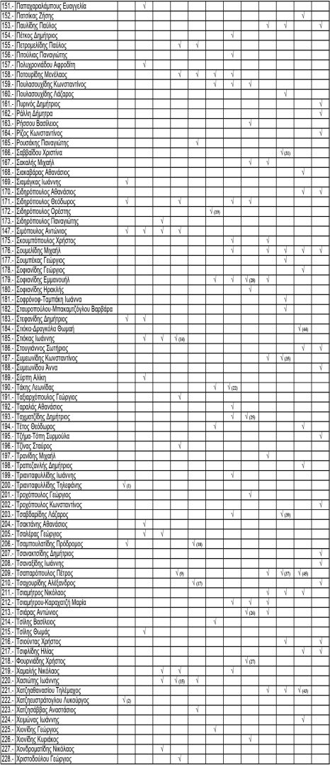 (29)-(30): στην θέση του παραιτηθέντος Γ. Ορφανίδη (10-06-2011) ανέλαβε ο Γ. Μελιόπουλος.