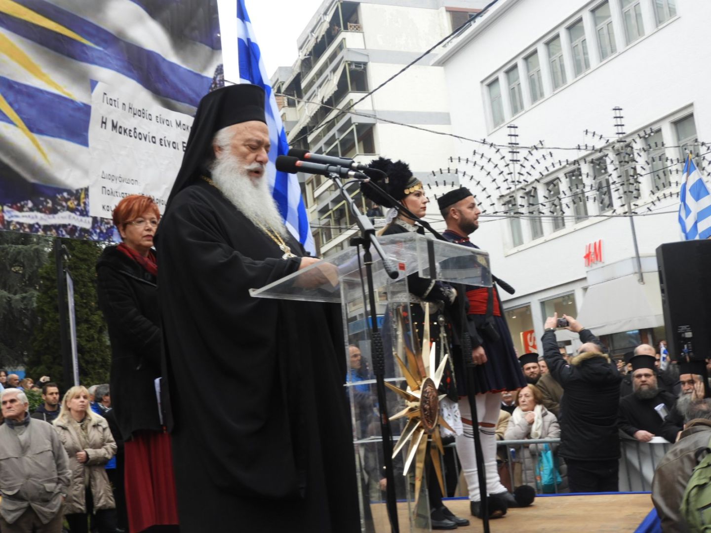-Λυγισμένη η φωνή του Μητροπολίτη όταν τραγουδούσαν την Μακεδονία Ξακουστή και τον εθνικό ύμνο, που σήμανε και το τέλος του συλλαλητηρίου το οποίο έληξε χωρίς παρατράγουδα στην Πλατεία και με τάξη γύρω από την εξέδρα… Και πώς να ρισκάρει άλλωστε να περάσει κάποιος από την «ζώνη» ασφαλείας του Τσιφλίδη…