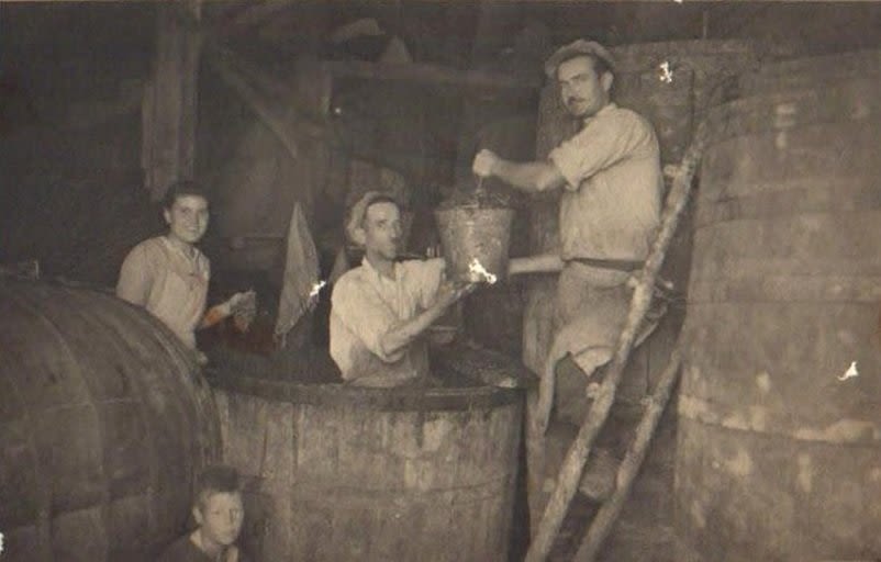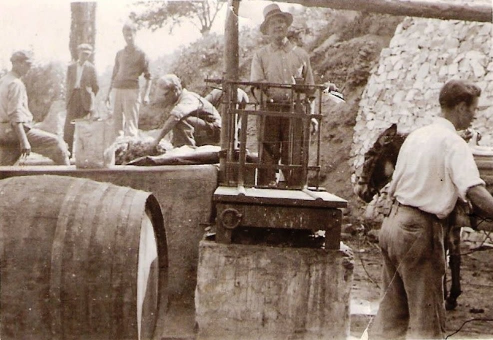 Εργασίες ζύμωσης για την παραγωγή οίνου (Αρχείο Σούλη Ισαακίδη)