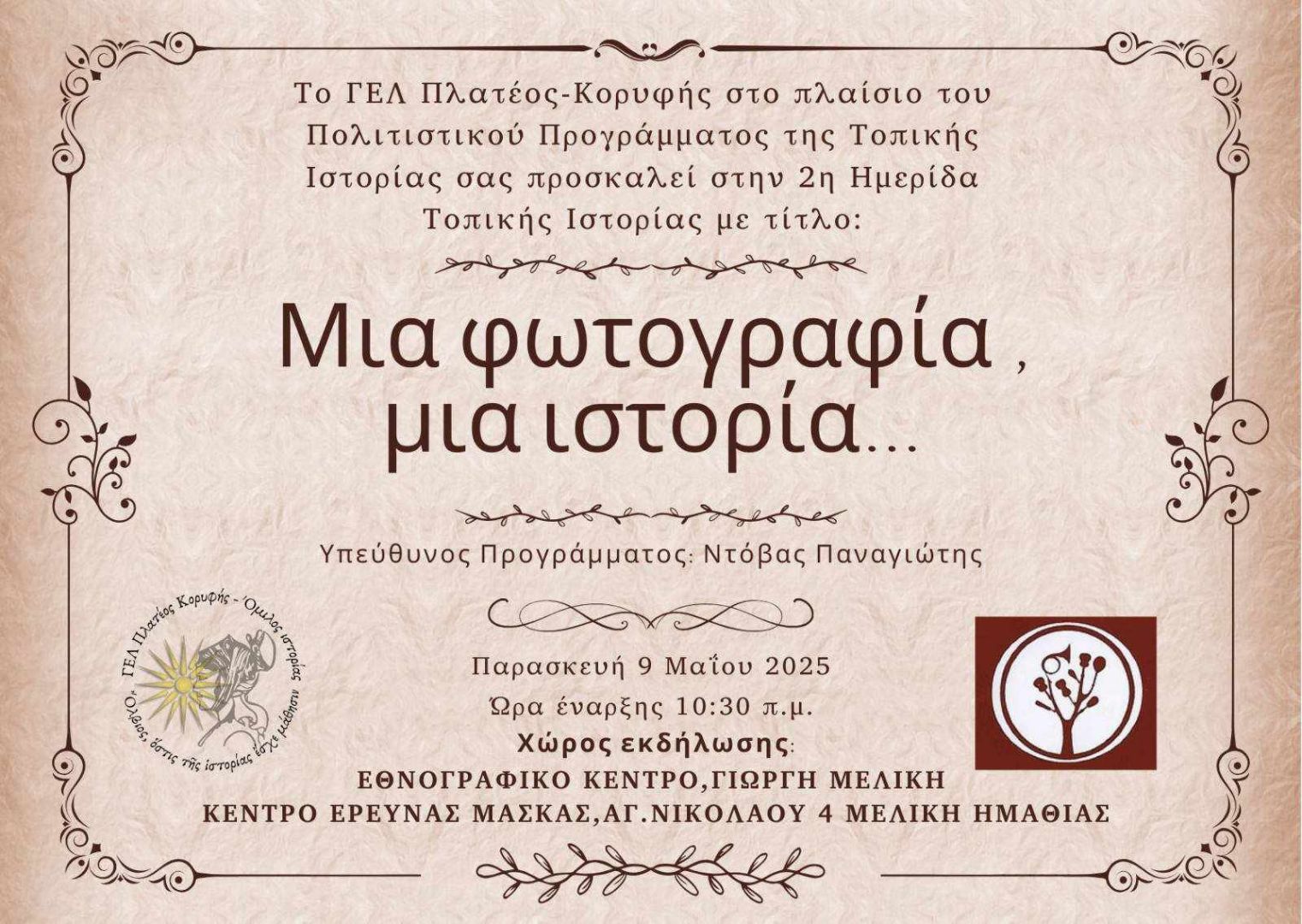 τίτλο: «Μια φωτογραφία, μια ιστορία…» την Παρασκευή 9 Μαϊου 2025 στις 10.30