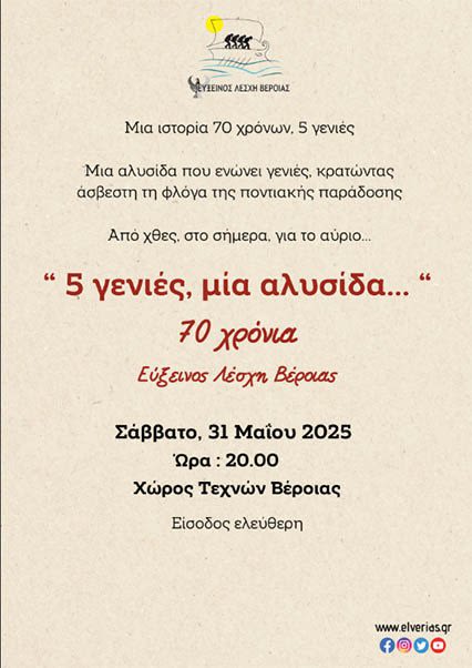 2025 στις 8μμ στο Χώρο Τεχνών του Δήμου Βέροιας.