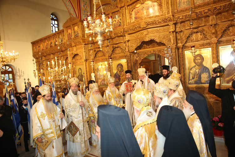 Στην Δοξολογία συγχοροστάτησαν οι Σεβασμιώτατοι Μητροπολίτες Λαοδικείας κ. Θεοδώρητος (ως εκπρόσωπος του Πατριαρχείου), Θεσσαλιώτιδος και Φαναριοφερσάλων κ. Τιμόθεος (ως εκπρόσωπος της Ιεράς Συνόδου), Δημητριάδος και Αλμυρού κ. Ιγνάτιος (ως εκπρόσωπος της Συνοδικής Επιτροπής για τα 200 χρόνια), Καλαβρύτων και Αιγιαλείας κ. Ιερώνυμος, Βεροίας, Ναούσης και Καμπανίας κ. Παντελεήμων, Δράμας κ. Παύλος, Φθιώτιδος κ. Συμεών, Νέας Ιωνίας, Φιλαδελφείας, Ηρακλείου και Χαλκηδόνος κ. Γαβριήλ, Λήμνου και Αγίου Ευστρατίου κ. Ιερόθεος.