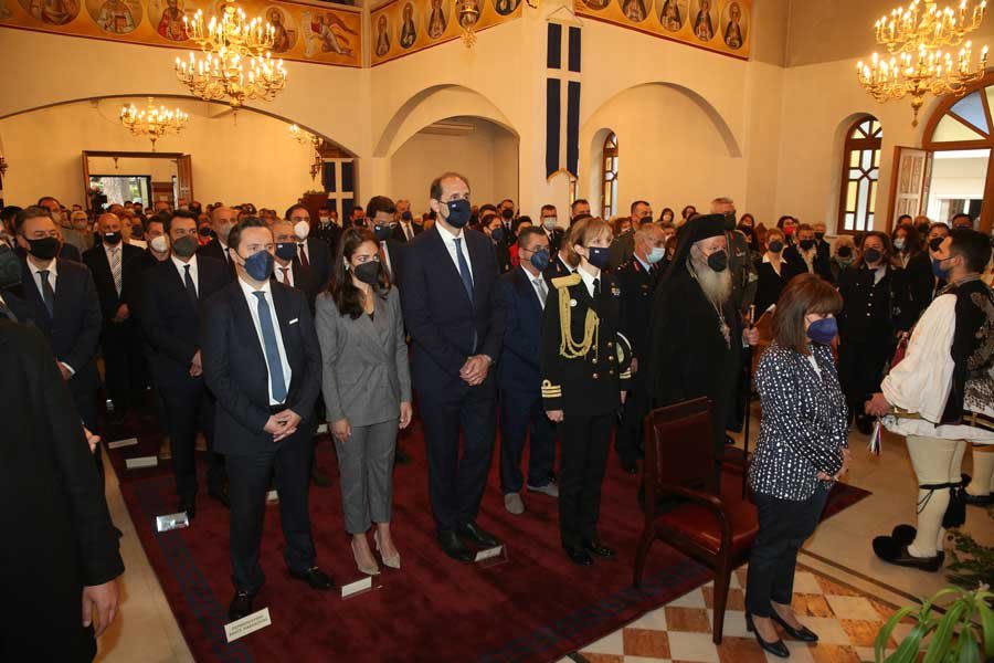 Στην Πολυαρχιερατική Θεία Λειτουργία, που τελέστηκε στον Μητροπολιτικό Ναό Μεταμορφώσεως του Σωτήρος, προεξάρχοντος του Μακαριωτάτου Αρχιεπισκόπου Αθηνών και πάσης Ελλάδος κ.κ. Ιερωνύμου, παρέστη σύσσωμη η πολιτειακή, πολιτική, στρατιωτική και εκκλησιαστική ηγεσία.
