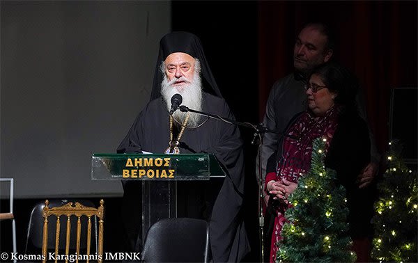 Στην εκδήλωση παρευρέθηκε ο Ποιμενάρχης μας, Σεβασμιώτατος Μητροπολίτης Βεροίας, Ναούσης και Καμπανίας κ. Παντελεήμων, ο οποίος για ακόμη μία φορά συνεχάρη την διευθύντρια του ΚΕ.Μ.Α.Ε.Δ. κ. Μελίνα Δαμιανίδου και τους συνεργάτες της για το σπουδαίο έργο που επιτελούν, αναφέροντας μεταξύ άλλων: Μέ μεγάλη χαρά, ὅπως γράφει ἡ πρόσκληση, ὁ Φιλανθρωπικός μή κερδοσκοπικός Σύλλογος Φίλων Κέντρου ἀτόμων μέ ἀναπηρία τοῦ Δήμου Βεροίας καί ἡ δραστήρια πρόεδρός του, ἡ κ. Δαμιανίδου, μᾶς προσκάλεσε στή μουσικοχορευτική παράσταση γιά τήν παγκόσμια ἡμέρα Ἀτόμων μέ ἀναπηρία, πού πραγματοποιεῖται ἀπόψε στόν πάντα φιλόξενο Χῶρο Τεχνῶν τοῦ Δήμου μας.