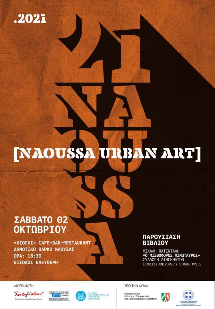 To Σάββατο 2 Οκτωβρίου στο cafe-bar -restaurant «ΚΙΟΣΚΙ» στο Δημοτικό Πάρκο Νάουσας και ώρα 18:30, στο πλαίσιο του Naoussa Urban Art Festival 2021 θα πραγματοποιηθεί η παρουσίαση του βιβλίου του Μιχάλη Πατένταλη “Ο Μισθοφόρος Μινώταυρος” (Διηγήματα), των εκδόσεων University Studio Press, ενώ μετά το πέρας της εκδήλωσης θα γίνει η τελετή λήξης του φεστιβάλ.