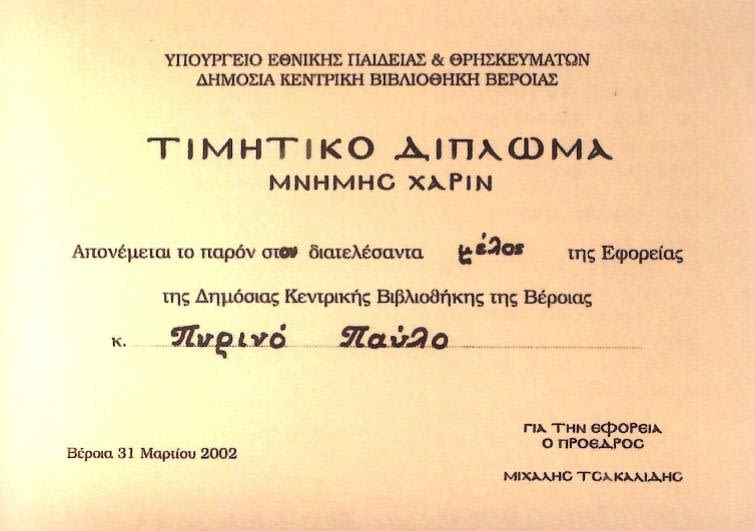 Είναι γνωστός ο εκλεκτός συμπολίτης μας κύριος Παύλος Δ. Πυρινός για το συγγραφικό-ερευνητικό του έργο, το «πολύκαρπο», που επί δεκαετίες προσφέρει στους Βεροιείς και στην ευρύτερη Ημαθία, καθώς και σε κάθε Έλληνα που ενδιαφέρεται για την Πατριδογνωσία μας, αφού το έργο του περιλαμβάνει ευρύτητα σε πλάτος και βαθύτατες σε ουσία γνώσεις, για την τοπική αλλά και την μεγάλη μας Πατρίδα.