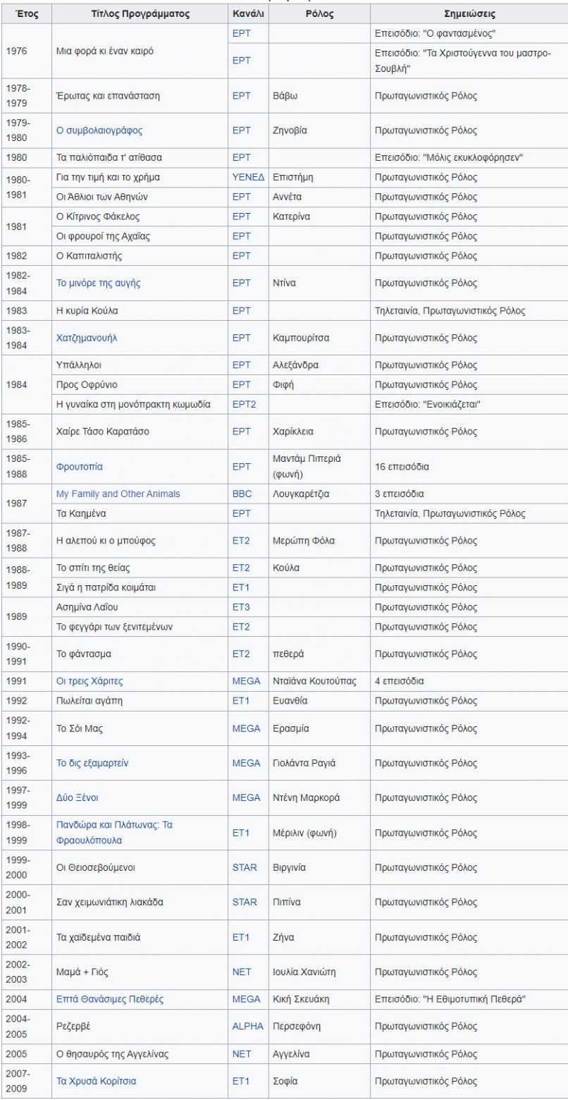 «Μόλις πληροφορήθηκα από τον πατέρα Συμεων το θλιβερό νέο που θα μας γεμίσει όλους πόνο! Η πολυαγαπημένη μας, η σπουδαία ηθοποιός, η αγωνίστρια δημοκράτισσα, η πολυτάλαντη συνάδελφος και ταυτόχρονα χαμηλών τόνων κι αθόρυβη φίλη μας έφυγε από κοντά μας σήμερα στις 7 το πρωί… Ντινακι μας, που μας χάρισες τόσες σπουδαίες ερμηνειες στο Θέατρο κι ανεπαναληπτες δημιουργίες κάθε ειδους στην τηλεόραση θα μας λείψεις πολύ!!!! ΚΑΛΟ ΤΑΞΙΔΙ ΓΛΥΚΕΙΑ ΜΑΣ ΑΓΑΠΗΜΕΝΗ» έγραψε ο Σπύρος Μπιμπίλας.