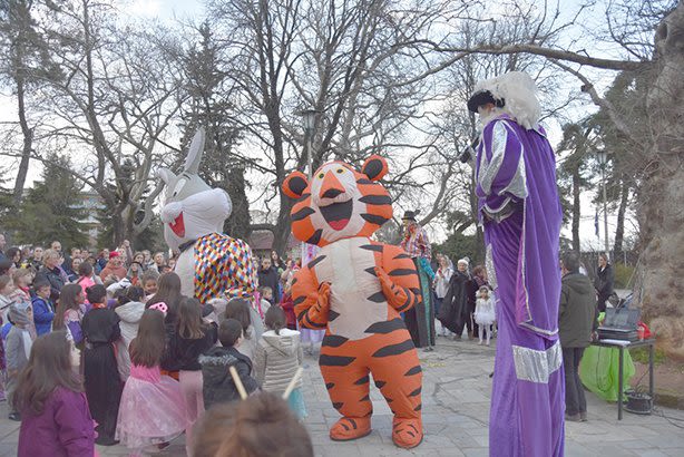 Η ομάδα θεάτρου δρόμου «Teatro Theama», με φαντασία, ρυθμό και χρώματα, μάγεψε μικρούς και μεγάλους και χάρισε αξέχαστες εικόνες σε όλα τα παιδιά. Ξυλοπόδαροι – Ζογκλέρ – Ακροβάτες, εντυπωσιακές φουσκωτές φιγούρες καρτούν ύψους 3,5 μ., κινούνταν, χόρευαν και συμμετείχαν ενεργά στο δρώμενο, έστησαν το δικό τους αποκριάτικο «γαϊτανάκι», σε συνδυασμό μ’ ένα μοναδικό Bubble Show, ενώ σπουδαστές του τμήματος αισθητικής του ΕΠΑΛ Νάουσας έκαναν δωρεάν face painting σε όλα τα παιδιά.