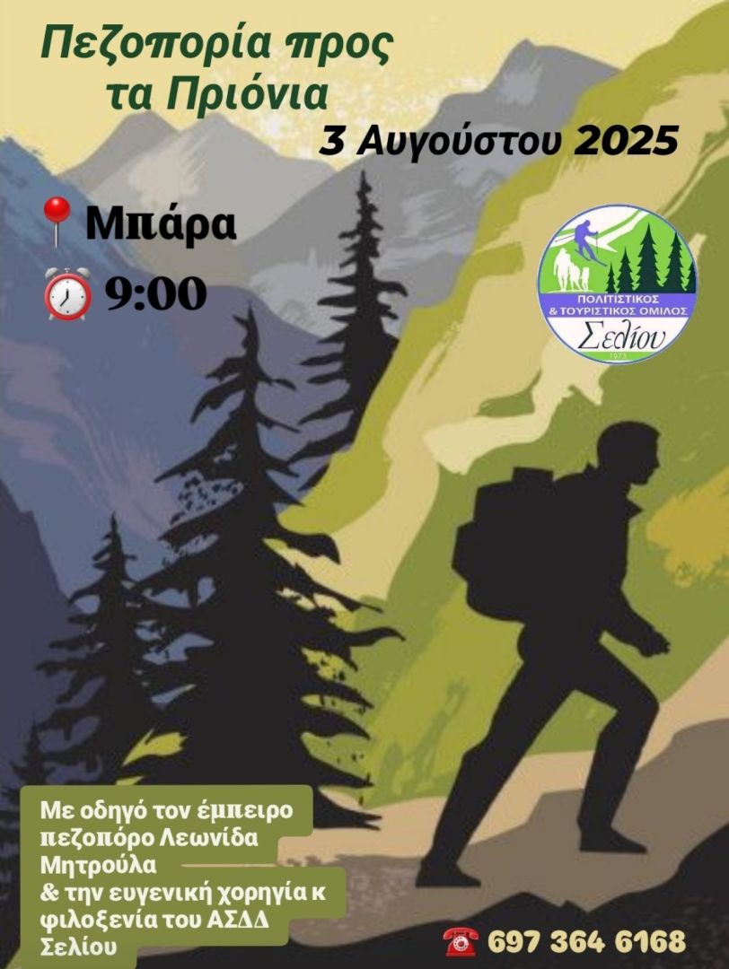 ΠΕΖΟΠΟΡΙΑ ΣΤΗ ΘΕΣΗ “ΠΡΙΟΝΙΑ” ΜΕ ΤΟΝ ΠΟΛΙΤΙΣΤΙΚΟ ΤΟΥΡΙΣΤΙΚΟ ΟΜΙΛΟ ΣΕΛΙΟΥ