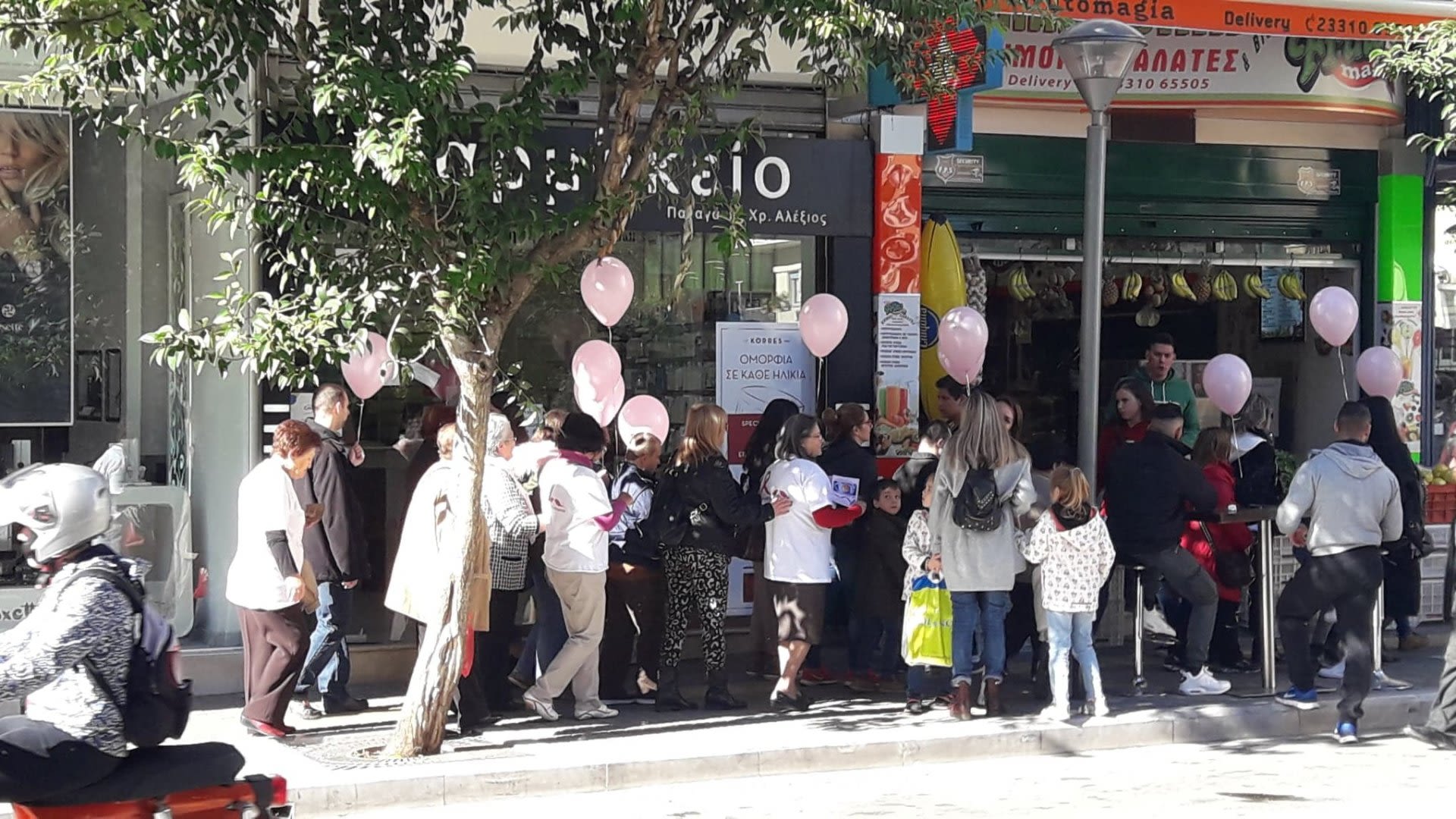 πολίτες μοιράζοντας έντυπα και τα χαρακτηριστικά ροζ κορδελάκια του Οκτώβρη!