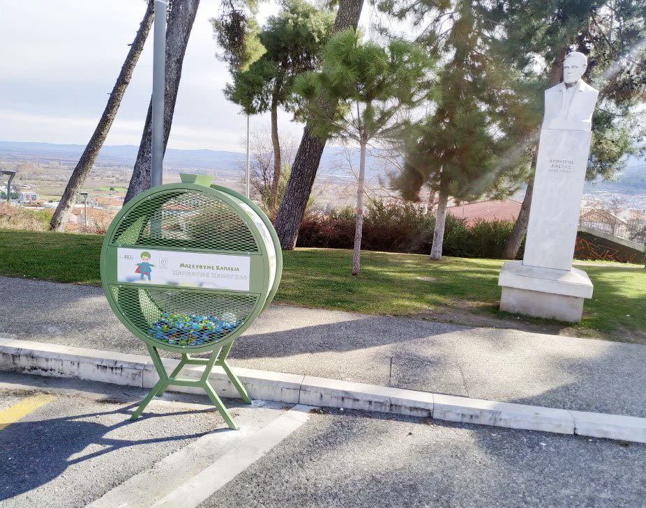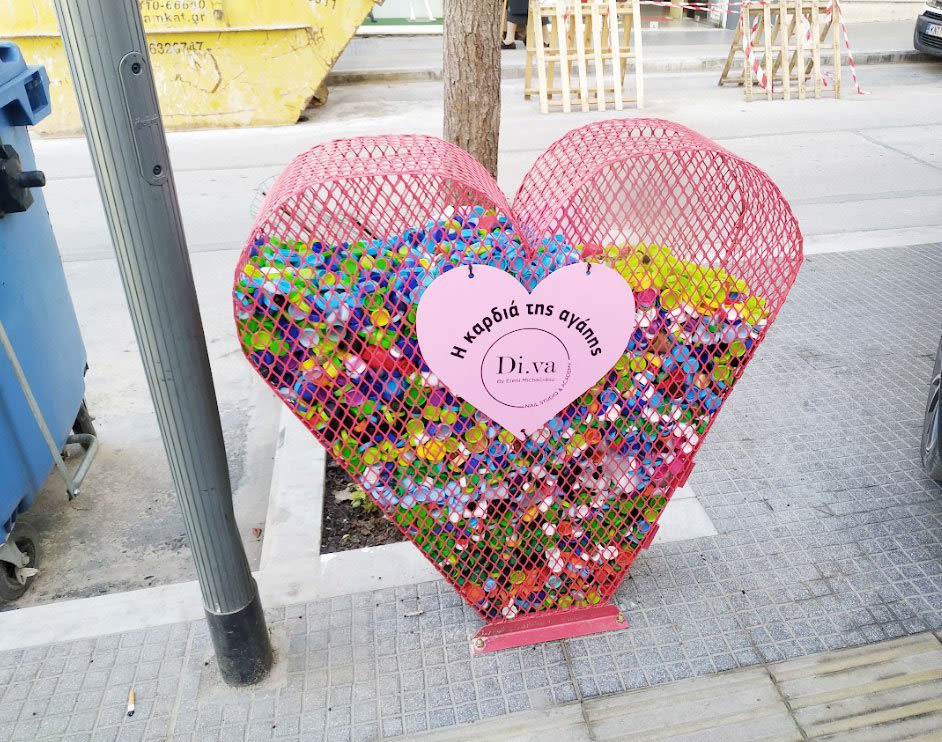 Τον τελευταίο καιρό σε κεντρικά σημεία της πόλης μας, έκαναν την εμφάνισή τους καλαίσθητες μεταλλικές κατασκευές για τη συγκέντρωση σκληρών πλαστικών καπακιών από χρησιμοποιούμενες συσκευασίες (γάλα, νερό απορρυπαντικά κ.α).