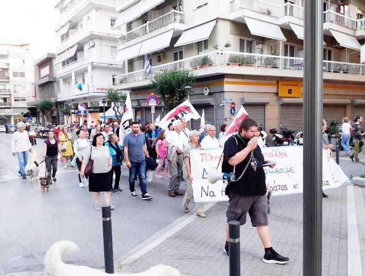 «Πληρώσαμε πολλά, δεν θα πληρώσουμε ξανά» το σύνθημα στο κεντρικό πανό, ζητώντας να πληρώσουν οι εργοδότες και το κράτος. Συμβολική κυρίως η πορεία, με σταθερά όμως αιτήματα από την πλευρά των διοργανωτών.