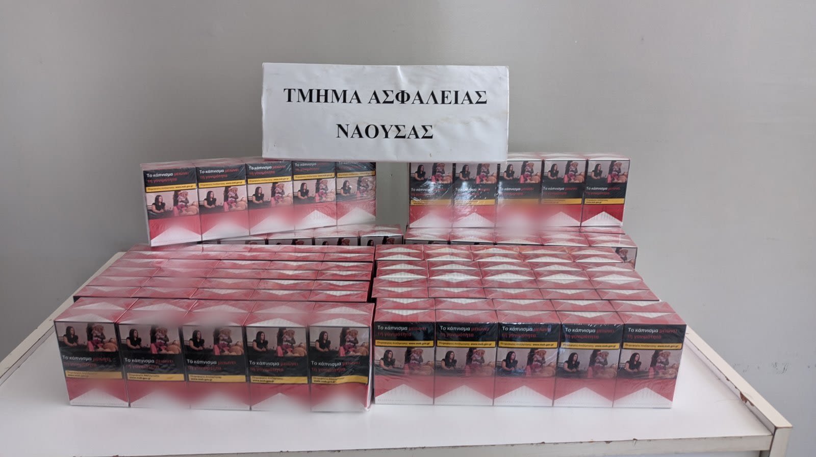Συνελήφθη χθες (7 Ιουλίου 2022) το μεσημέρι σε περιοχή της Ημαθίας, από αστυνομικούς του Τμήματος Ασφάλειας Νάουσας, ημεδαπός άνδρας, καθώς σε έρευνα που πραγματοποιήθηκε στην οικία του εντοπίστηκαν και κατασχέθηκαν 130 πακέτα τσιγάρων, που δεν έφεραν την ειδική ταινία ασφάλειας και για τα οποία δεν είχαν καταβληθεί οι νόμιμοι φόροι και δασμοί.