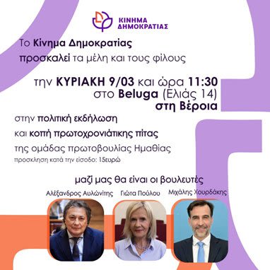 Πρωτοβουλίας Ημαθίας του Κινήματος Δημοκρατίας καλεί τα μέλη και
