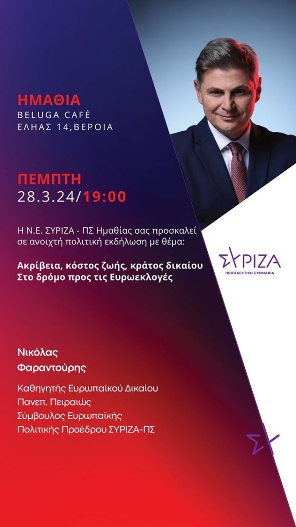 Πολιτική εκδήλωση θα πραγματοποιήσει ο ΣΥΡΙΖΑ στη Βέροια την