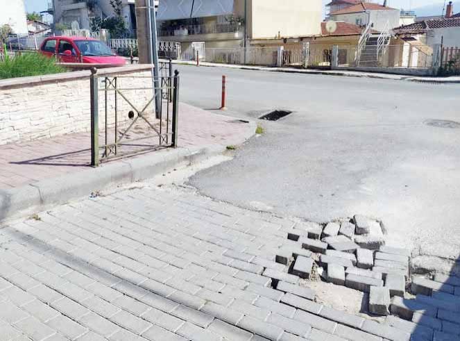 Τα τουβλάκια στο δρόμο έχουν σπάσει, με αποτέλεσμα να δυσκολεύονται τα αυτοκίνητα και κυρίως τα δίκυκλα όταν κατέβουν στην στο δρόμο. Αρκετές παρατηρήσεις-παράπονα για την κατάσταση έχουν κάνει οδηγοί στο Λαό και το μεταφέρουμε αρμοδίως… Μία επιδιόρθωση χρειάζεται το πλακόστρωτο και ακριβώς επάνω στο σημείο της στροφής, προς την Πιερίων.