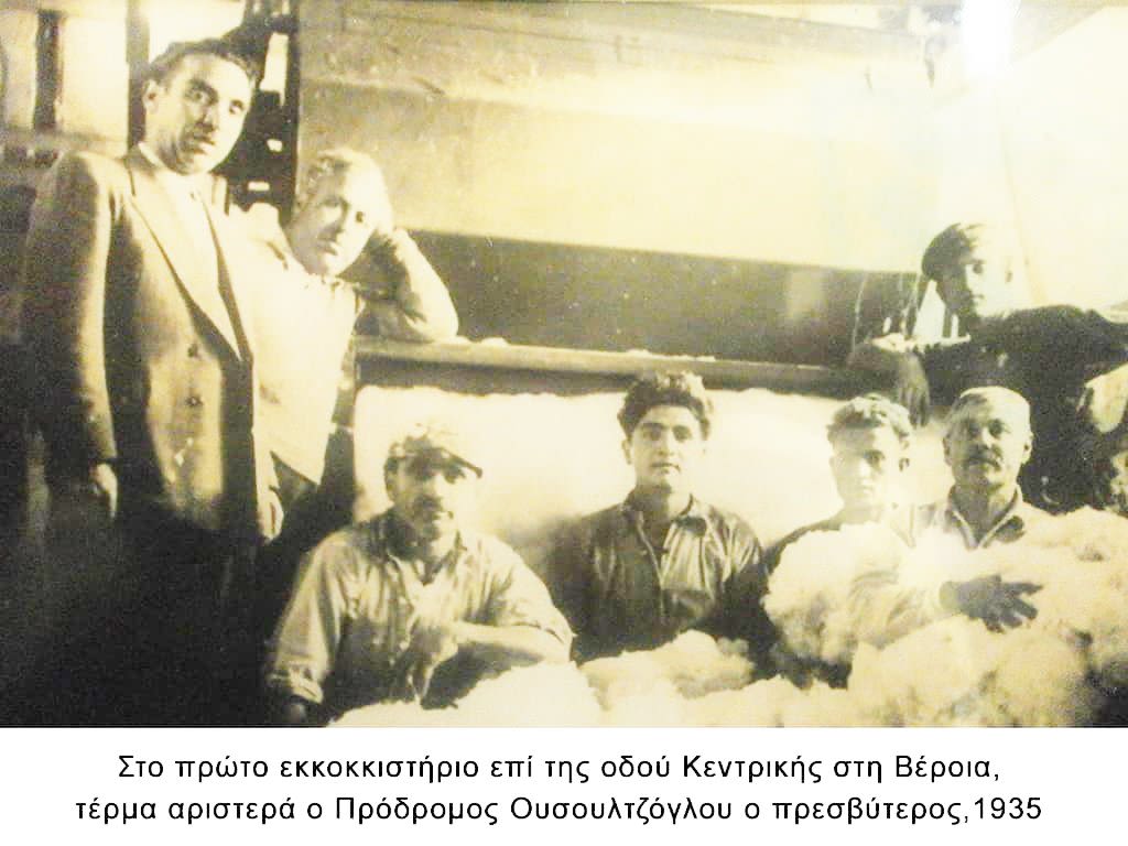 Αναζητώντας αρχειακές φωτογραφίες πέσαμε στην συγκεκριμένη που μας γυρνά στο 1935 και συγκεκριμένα στο πρώτο εκκοκκιστήριο της Βέροιας με τον Πρόδρομο Ουσουλτζόγλου τότε να οδηγεί την αναπτυσσόμενα ραγδαία για την εποχή δραστηριότητα.