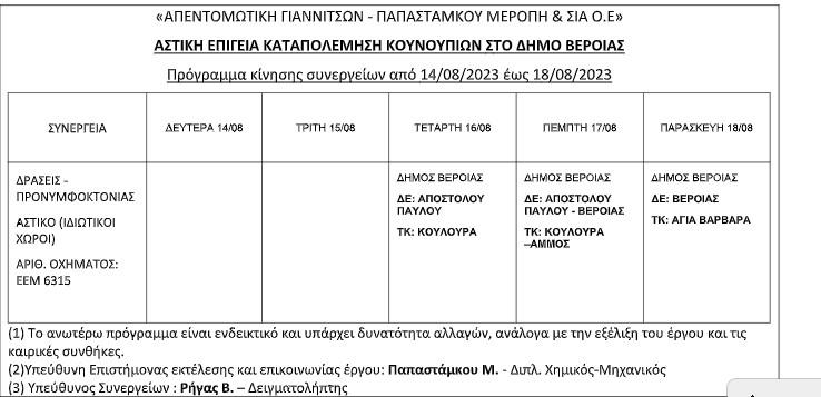 Ανακοινώνεται από το Δήμο Βεροίας ότι στα πλαίσια του Προγράμματος Καταπολέμησης