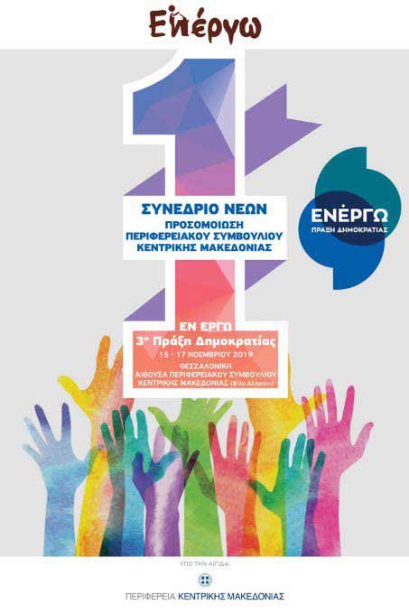 Πρόσκληση ενδιαφέροντος σε νέους και νέες από την Κεντρική Μακεδονία, ηλικίας από 18 έως 28 ετών, απευθύνει το Σωματείο «Εν Έργω», στο πλαίσιο του 1ου Συνεδρίου Προσομοίωσης Περιφερειακού Συμβουλίου «Εν Έργω» – 3η Πράξη Δημοκρατίας, που τελεί υπό την αιγίδα της Περιφέρειας Κεντρικής Μακεδονίας. Το συνέδριο θα διεξαχθεί από τις 15 έως τις 17 Νοεμβρίου 2019 στη Θεσσαλονίκη, στην αίθουσα συνεδριάσεων του Περιφερειακού Συμβουλίου Κεντρικής Μακεδονίας.