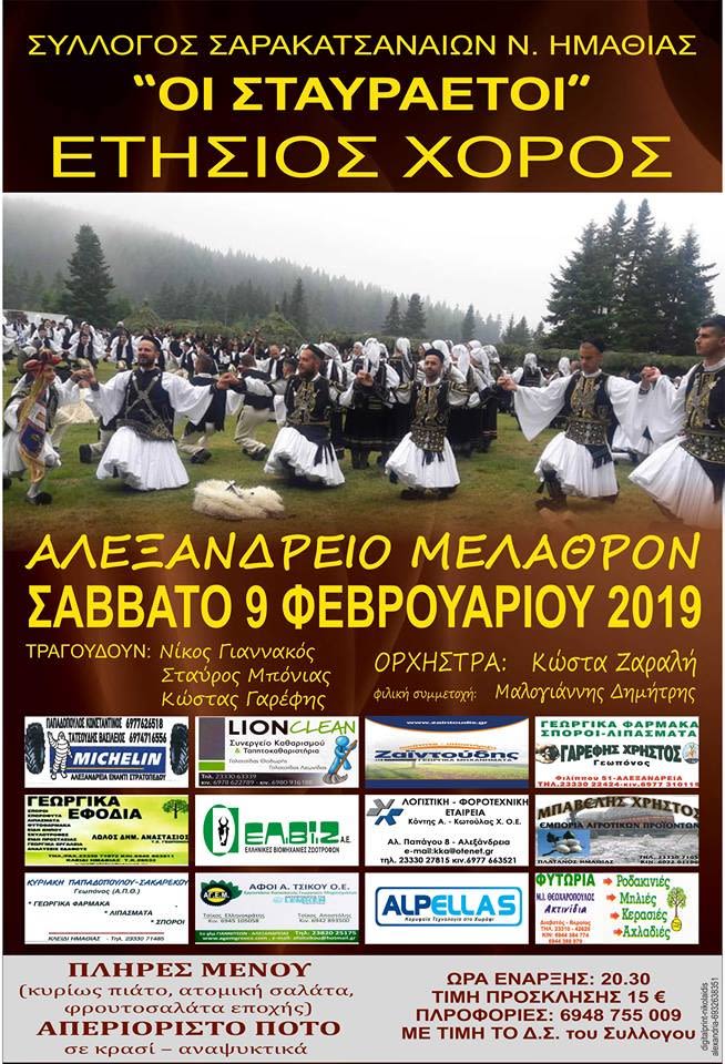 Πρόσκληση για τον Ετήσιο χορό του Συλλόγου Σαρακατσαναίων Ν. Ημαθίας – Το Σάββατο 9 Φεβρουαρίου στις 8:30 μ.μ. «ΑΛΕΞΑΝΔΡΕΙΟ ΜΕΛΑΘΡΟ»