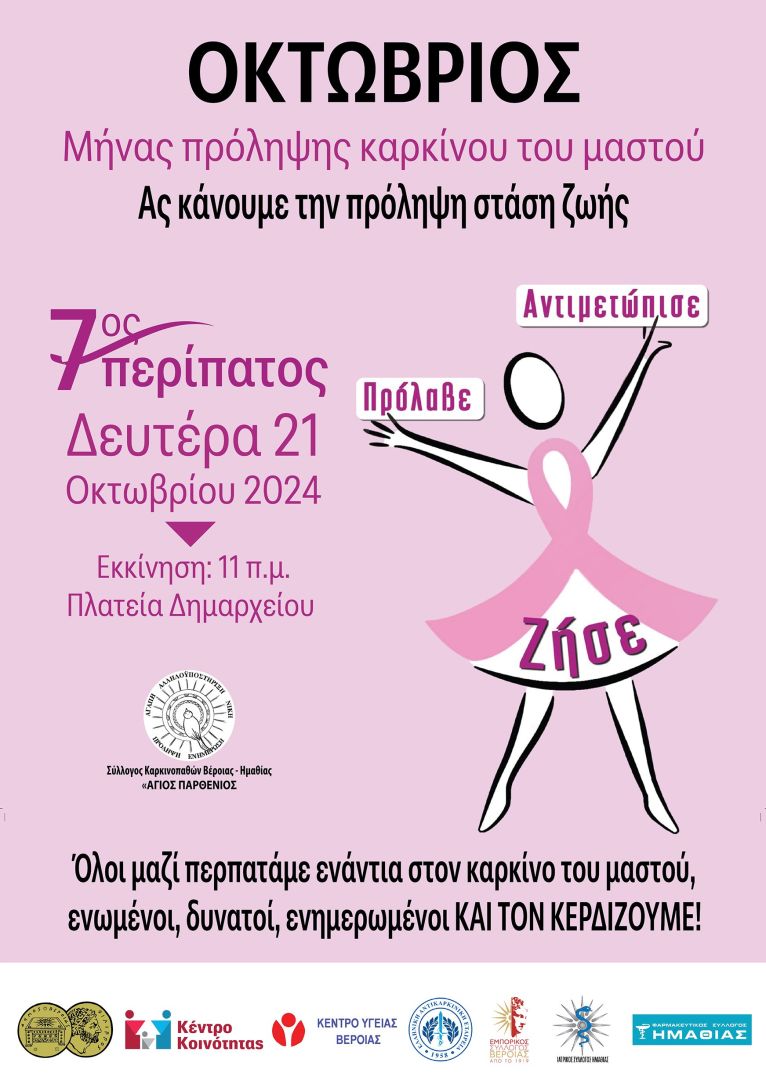 Στα πλαίσια των δράσεων  « ΟΚΤΩΒΡΗΣ ΜΗΝΑΣ ΠΡΟΛΗΨΗΣ ΚΑΙ ΕΝΗΜΕΡΩΣΗΣ ΚΑΡΚΙΝΟΥ ΤΟΥ ΜΑΣΤΟΥ» , σας προσκαλούμε την Δευτέρα 21 Οκτωβρίου στις 11.00’ το πρωί στην πλατεία Δημαρχείου να στολίσουμε ροζ φιόγκους το χώρο