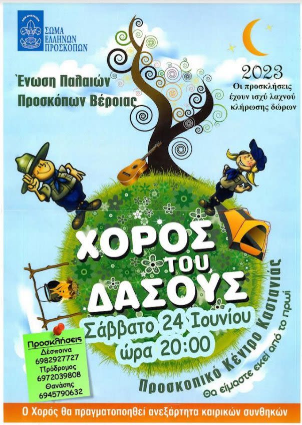 Η Ένωση Παλαιών Προσκόπων Βέροιας προσκαλεί τα μέλη της και τους φίλους του Προσκοπισμού στον ΄΄Χορό του Δάσους 2023΄΄ την εκδήλωση θεσμό που έρχεται φέτος με μεγαλύτερο ενθουσιασμό!